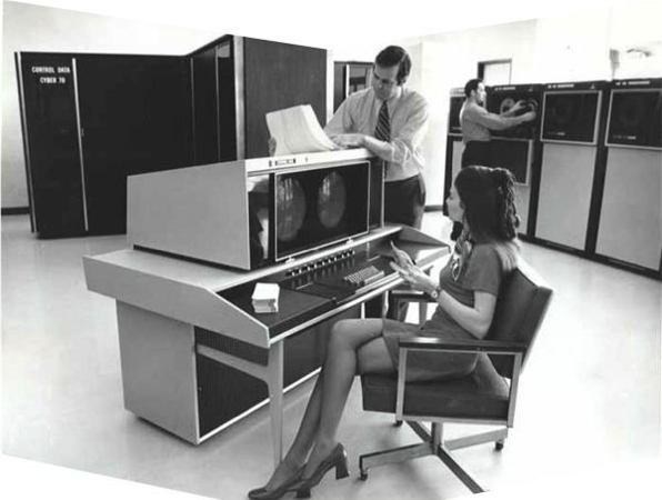 En mi caso, el acercamiento a estos recursos fue a finales de los años setenta en el Centro Nacional de Cálculo del IPN, que contaba entonces con una poderosa mainframe modelo Cyber 72 (Figura 2) fabricada por Control Data Corporation (CDC) [5], a la cual se accedía de manera remota por terminales y a través de tarjetas perforadas.