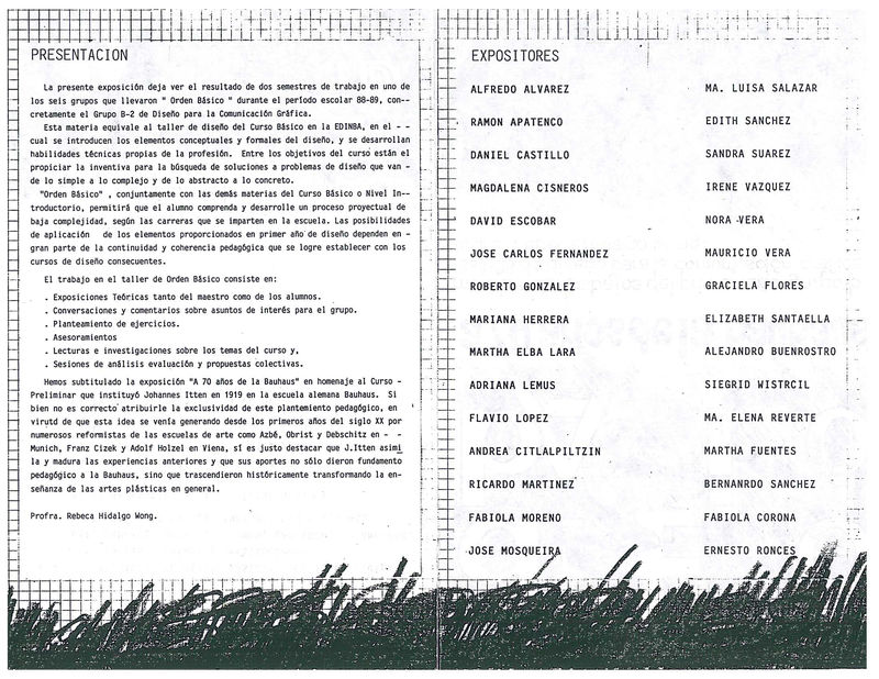 Ingresé a la licenciatura en Diseño Gráfico en 1988 en el nuevo plantel de la escuela, ubicado en Xocongo 138, en la colonia Tránsito. [1] El plan de estudios era el conocido como Plan 75, que ofrecía las carreras de Diseño Gráfico, Diseño de Muebles, Diseño de Objetos y Diseño Textil. [2] En este plan se impartían asignaturas como Orden Básico, [3] materia claramente derivada de los postulados de la Escuela de la Bauhaus —el Vorkurs— que trataba sobre los principios del diseño y la naturaleza de los materiales.
