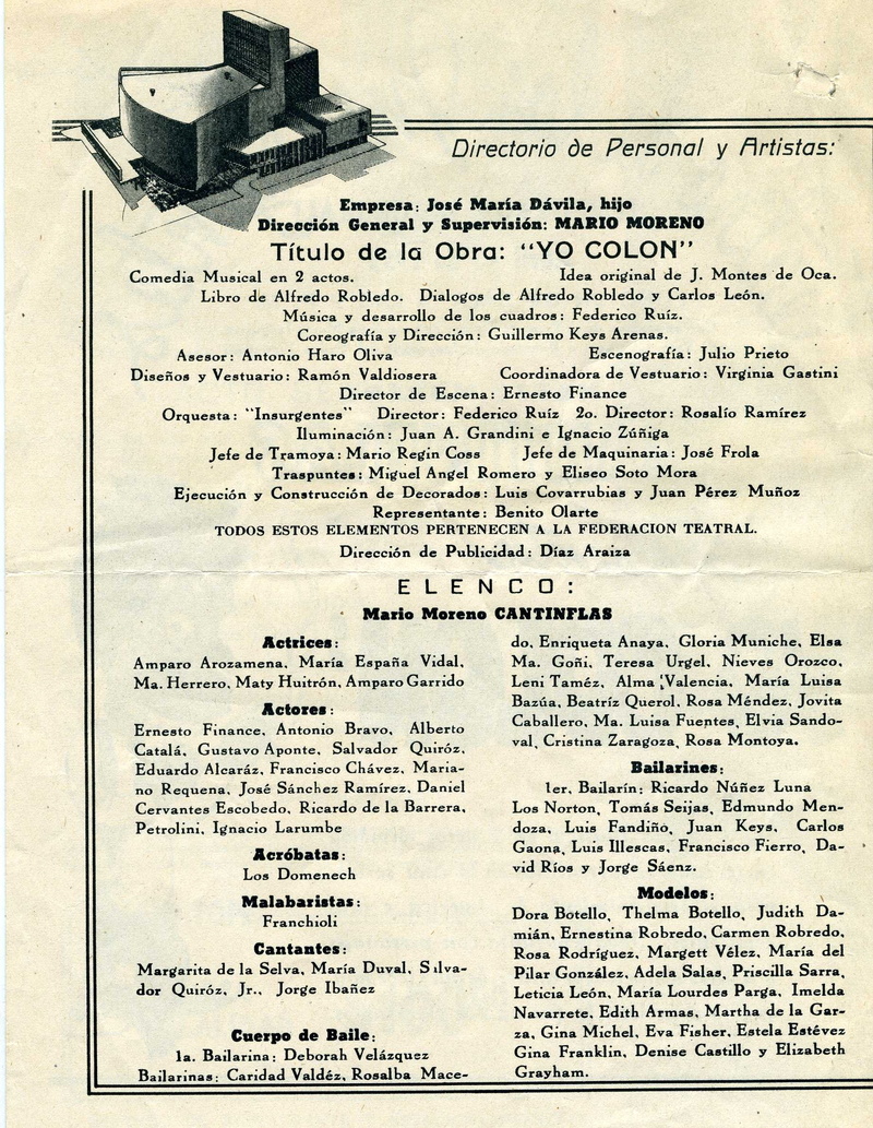 Programa de mano de Yo Colón, 1953. Fondo La carpa en México,