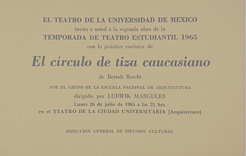 Invitación a El círculo de tiza caucasiano, 1965. Fondo Ludwik