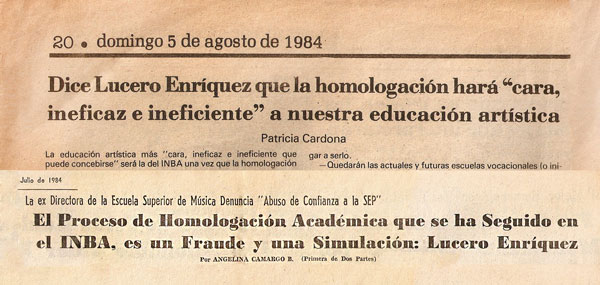 El asunto de la homologación partía de reconocer diferencias y problemas de la educación en cada una de las especialidades: música, teatro, danza, artes plásticas y diseño, de acuerdo con los niveles educativos. La reunión de docentes de las diversas especialidades, así como la visita a diferentes espacios, fueron indispensables para ir reconociendo las diferencias y las afinidades de la enseñanza artística; si bien nos unía la demanda académica y laboral que implicaba la homologación, el desconocimiento de las otras partes resultaba evidente. Estas reuniones se dieron a través de los delegados sindicales nombrados en cada centro de trabajo, quienes en el transcurso de los acontecimientos nos agrupamos en un Bloque Democrático de las Escuelas Profesionales de Arte, que fue punta de lanza para la homologación y más allá: ir reconociendo y confrontando problemas diversos de las escuelas y la educación artística. Estas reuniones de docentes directamente involucrados se iniciaron a principios de los años ochenta y siguieron a lo largo de la década, incluido el primer Coloquio de Educación Artística en 1987.