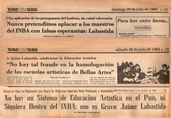 Artísticas, Jaime Labastida Ochoa, una negociación paralela con los