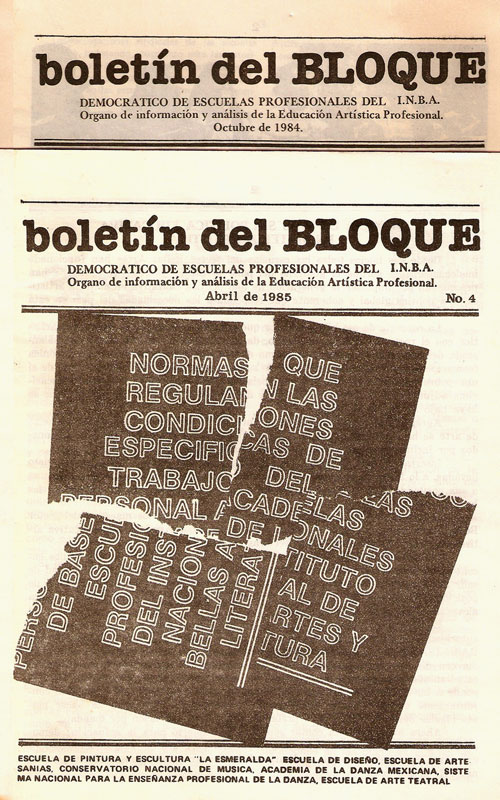 This essay recounts the most important struggle of unionized teachers in the second half of the 20th century, on behalf of art education and research carried out at the Instituto Nacionalde de Bellas Artes (INBA), from the point of view of its protagonists: academics and students in the 1980’s who gave some of their time to achieve better working and financial conditions, better wages, as well as better installations and equipment for their schools and work centers. Being aware that any achievement of this sort implies a tug of war with both the authorities and power groups within official unions, who must be mentioned here as well, this essay acknowledges the authorities at the time, Javier Barros Valero and Jaime Labastida Ochoa, for not eschewing their responsibilities. This text is based on my personal participation in these struggles and on a paper read by members of the Bloque de Delegaciones Democráticas del Instituto Nacional de Bellas Artes at the Second National Congress on the History of Higher Education in Mexico, (Heading: Unionism), in March, 2002.