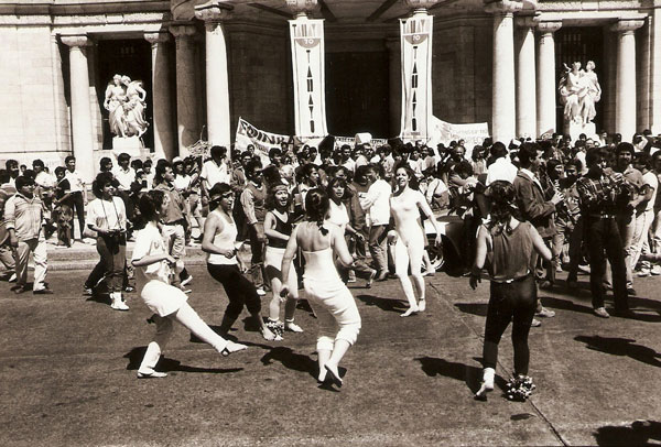 El 19 de febrero de 1988, el Bloque, en acuerdo con la CEA, organizaron un plantón artístico frente al Palacio de Bellas Artes. Estudiantes y profesores bailaron, tocaron, pintaron, volantearon y expusieron sus inconformidades y demandas, lo mismo con micrófono que con diversas expresiones gráficas. Las más importantes quedaron consignadas en la prensa y podrían resumirse en los siguientes puntos: constitución del consejo técnico pedagógico; cumplimiento total de la homologación con condiciones de trabajo de acuerdo con las del IPN; espacios, equipo y recursos mínimos indispensables para llevar adelante la educación artística profesional; resolución de las instalaciones para la Escuela de Diseño, la Escuela de Artesanías y la Academia de la Danza Mexicana.