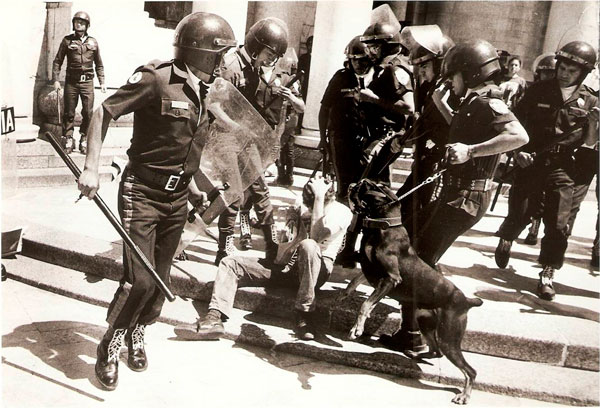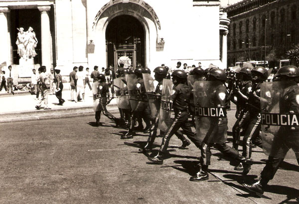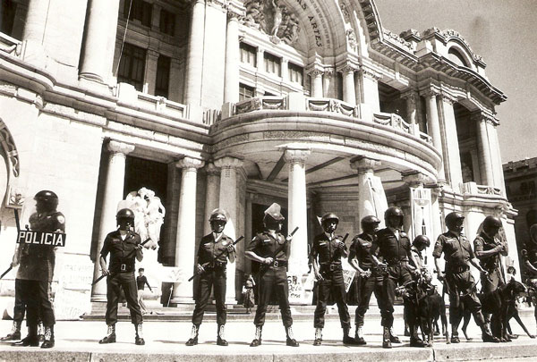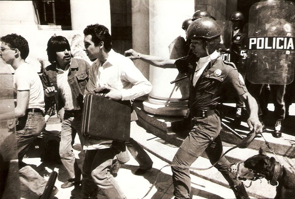 Esta es una síntesis de los acontecimientos: ese día en plena manifestación cultural, como a las 12:30 horas arribaron “tres patrullas, cuyos tripulantes indicaron a los voceros de los manifestantes que estaban cometiendo un ‘delito’, y ante la negativa de éstos a suspender el plantón, poco después arribaron dos carros con granaderos, los que formando cuatro hileras, armados y con perros, avanzaron amenazadoramente, hasta iniciar la agresión”.(2) Algunos alumnos salieron golpeados, el mitin se dispersó y fue un gran susto para todos. La prensa reseñó exhaustivamente este vil ataque. Las autoridades de Bellas Artes se sintieron ofendidas y demandaron explicación a la policía; al parecer los jefes policiacos fueron interrogados, pero todo quedó en una fútil explicación: hubo una confusión, se pensó que éramos parte de los disturbios que estaban ocurriendo a las mismas horas en el Zócalo capitalino.