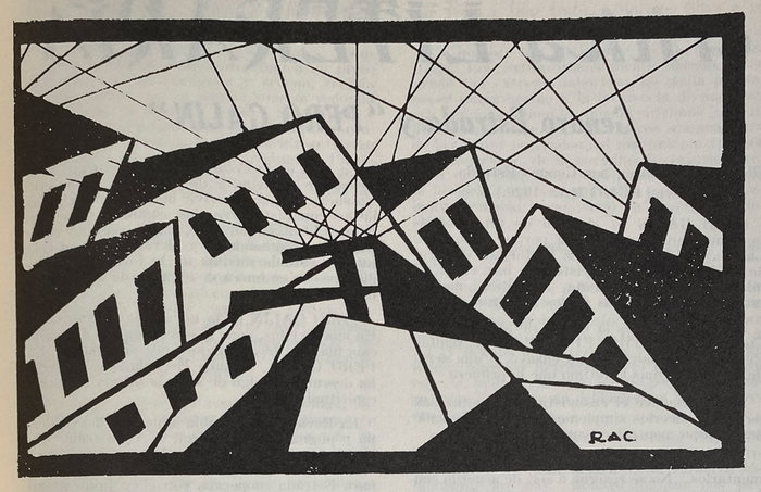 [26] “ Blocky forms and crisscrossed wires fit the textual image of playing dominoes with the city’s houses. Strong black-and-white contrasts, volumetric forms, sharp angles, and distorted perspective in Alva de la Canal’s Horizonte cities suggest his continued dialogue with contemporary German art.” Lynda Klich, The Noisemakers: Estridentismo, vanguardism, and social action in postrevolutionary Mexico , California, University of California Press, 2018, p. 235.